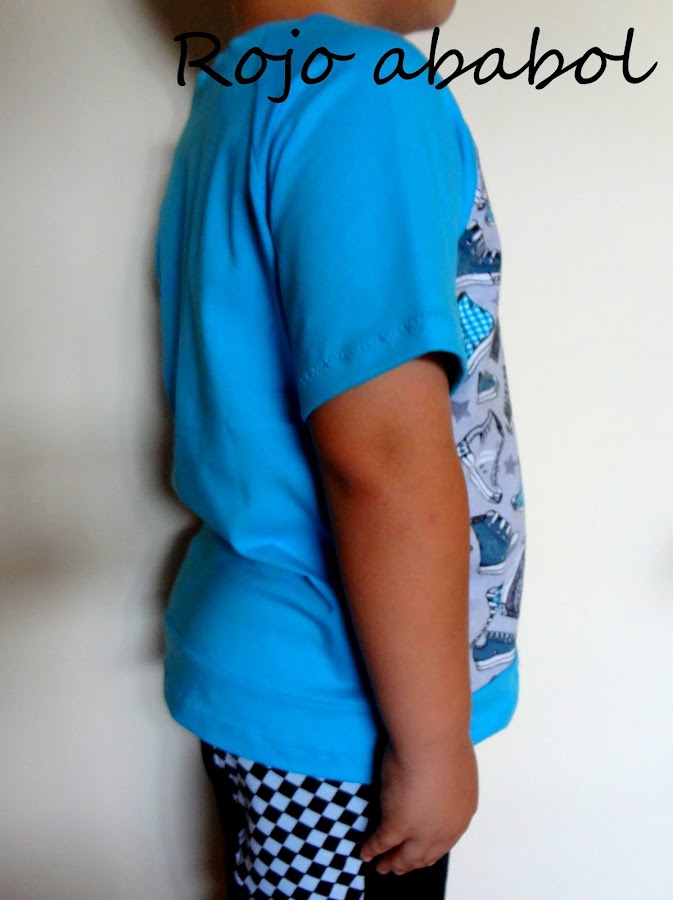 No tengo mucho que contar, el patrón es el mismo que en los demás conjuntos que le he cosido, cada vez le pillaba mejor el punto al patrón y al final conseguí la camiseta que encaja perfectamente en el cuerpo del bollito.