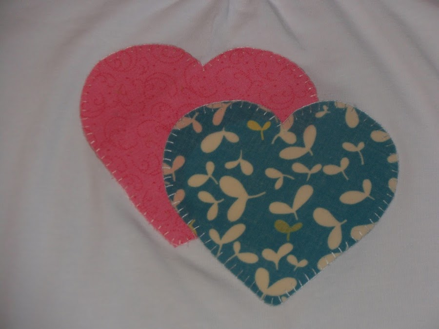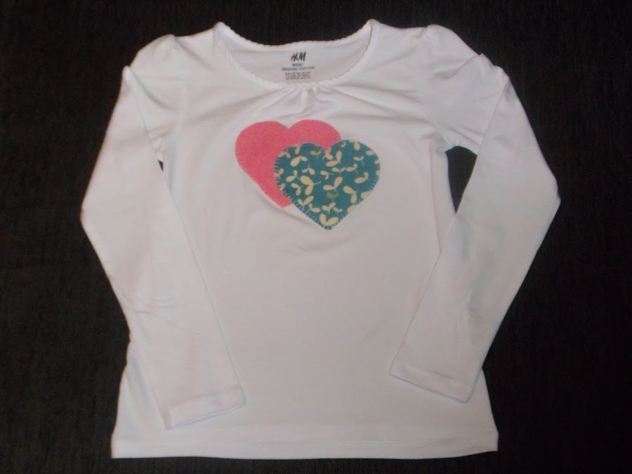 Otra camiseta personalizada, esta vez he aplicado dos corazones uno en tonos azules y otro en tonos rosas.