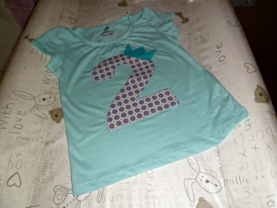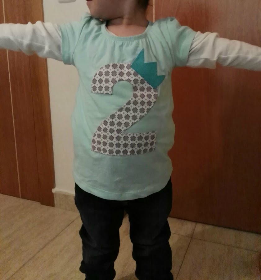 Otro proyecto que he cosido a ratitos a sido esta camiseta con el número dos y una corona para una niña que cumplía 2 años.
