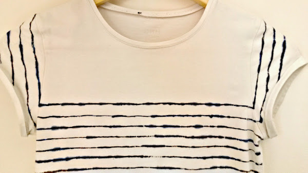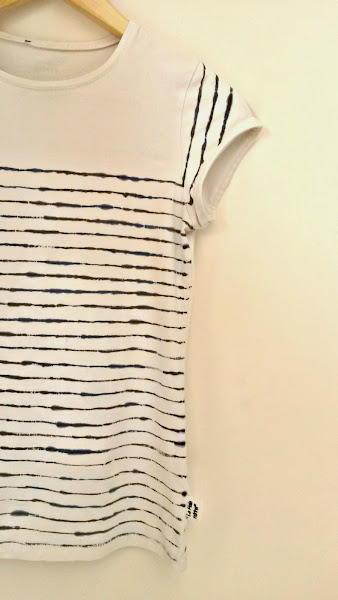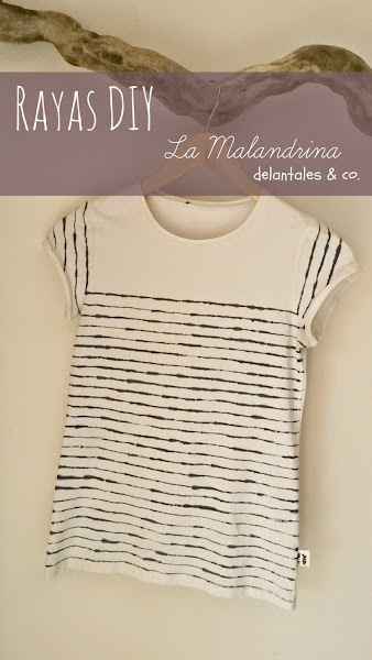 Las rayas las pinté con un pincel de punta muy fina y pintura textil muy diluida para que sean algo irregulares y tengan este efecto "acuarelado" muy handmade
