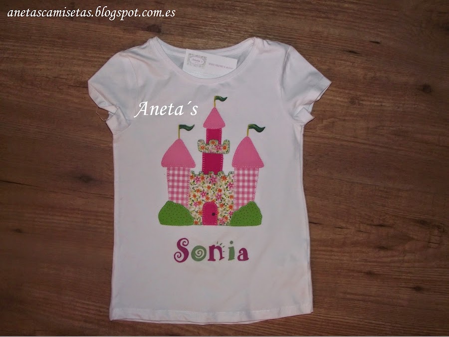 Buenas noches...hoy os dejo una camiseta decorada con un Castillo de Princesa y personalizada. El Castillo esta hecho con telas y cosido a mano y el nombre está pintado con pincel.