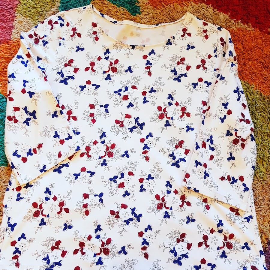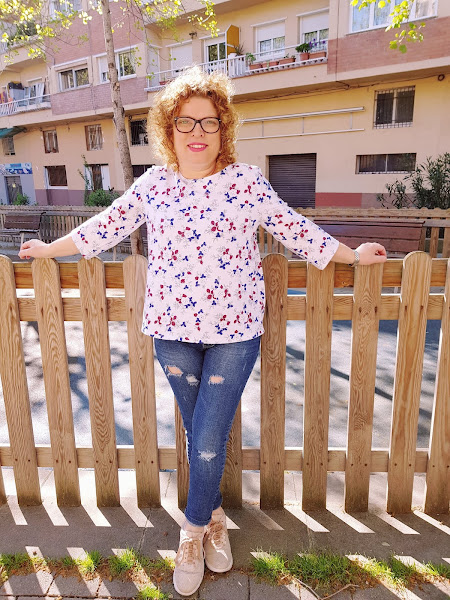 Necesitaba una camiseta para estos dias que no hace ni frio ni calor , en un principio buscaba un tejido de color blanco , para que combinara con todo , pero no encontre nada que me convenciera , hasta que vi este tejido de flores.