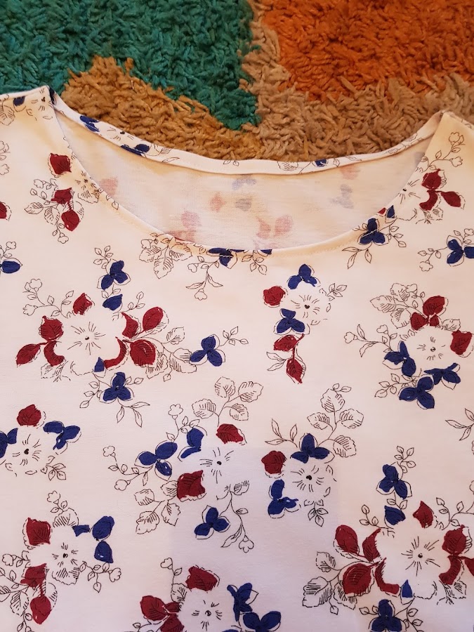 El cuello de la camiseta lo he rematado haciendo un dobladillo sencillo .