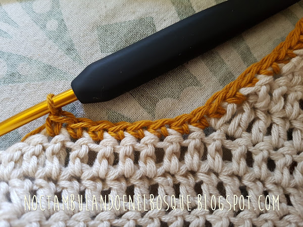 Vuelta 1: 1 pa en cada cadeneta (color ocre)