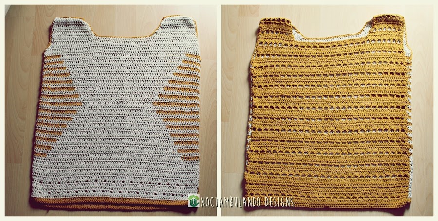 Está hecha a mi medida, que equivaldría aproximadamente a una talla M o L, depende que cómo os guste que os quede. Para ser exactos son 52 cm de ancho y 60 cm de largo desde el hombro.