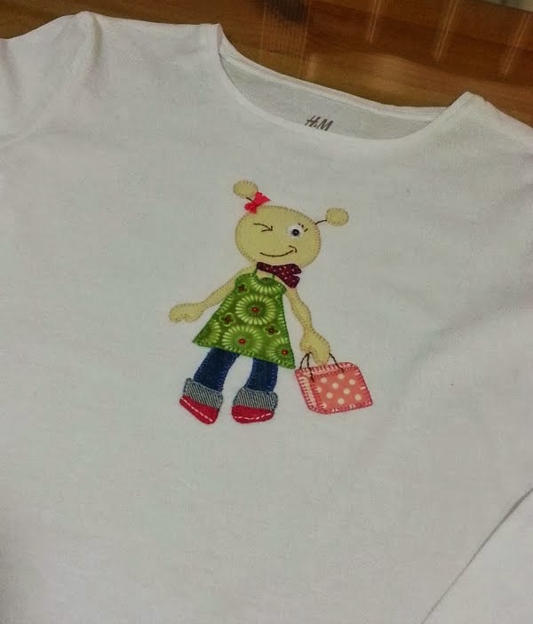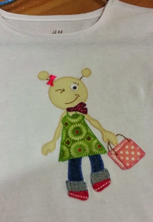 Recientemente recibí el encargo de una camiseta para una niña de diez años, quería una marciana. Como no tenía patrón de esta imagen busqué en internet marcianas, modifiqué una que me gustó y saqué los patrones. Es algo que hago a menudo, pues la mayoría de veces recibo encargos de motivos de los que no tengo patrón. Si alguna vez necesitáis sacar uno, no dudéis en poneros en contacto conmigo.
