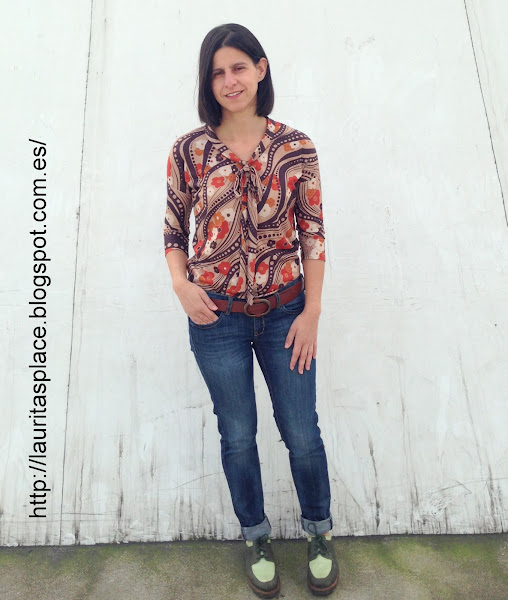Hace un tiempo compré una camiseta en el Lil de Hendaya y me gustó tanto la forma que tiene que decidí hacer un patrón basándome en ella, pero añadiendo una lazo en el cuello.