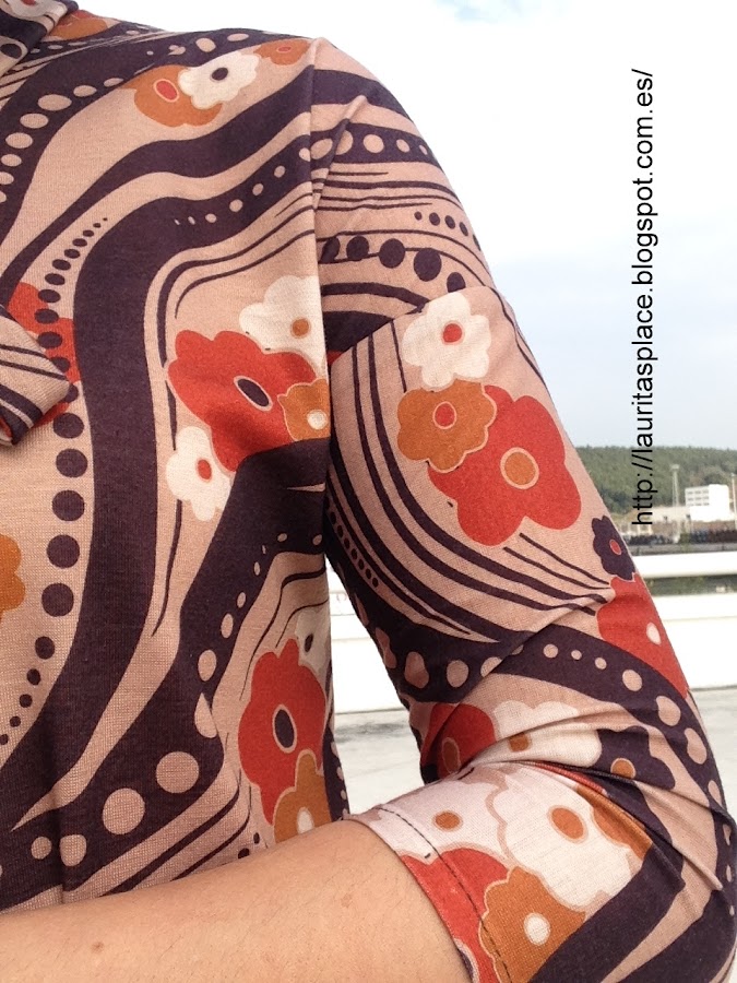 La tela que elegí la tenía en casa desde hace tiempo. La compré en una tienda de telas de Bilbao, a la vez que esta tela que usé para el Plantain que te enseñé aquí. Es de punto fino pero calentito y tiene un aire retro.