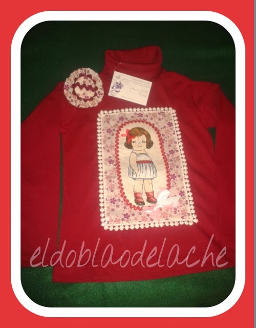 En tela color celeste con adornos en color negro y rojo. Una bonita combinación que se va para Tenerife.