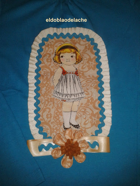 camiseta decorada con recortables en tonos turquesa y beige