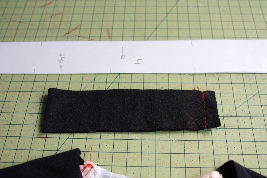 Lo doblamos a la mitad por el lado más estrecho derecho contra derecho y cosemos.