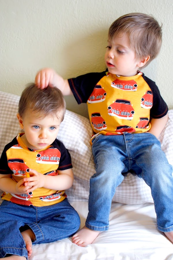 Esta vez quise hacerles algo igual a los dos, con esta tela tan bonita de MIMIDAESHOP que podéis encontrar aún y que mezcle con una tela negra de camiseta reciclada.