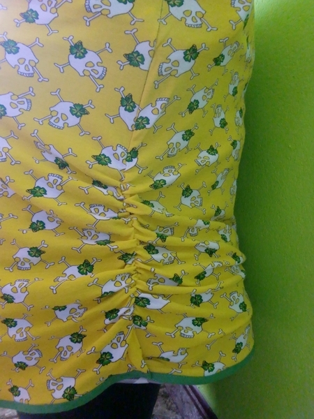 Fruncí (con ayuda de una goma elástica) los laterales y los hombros: