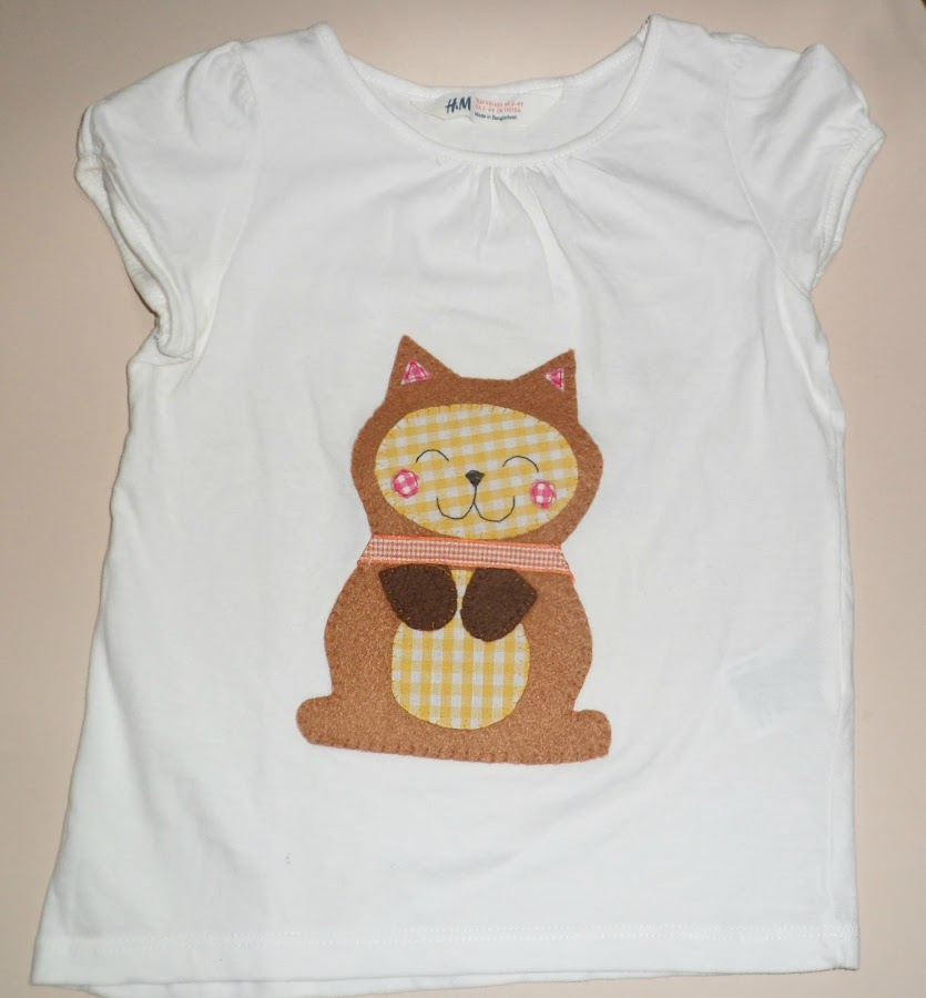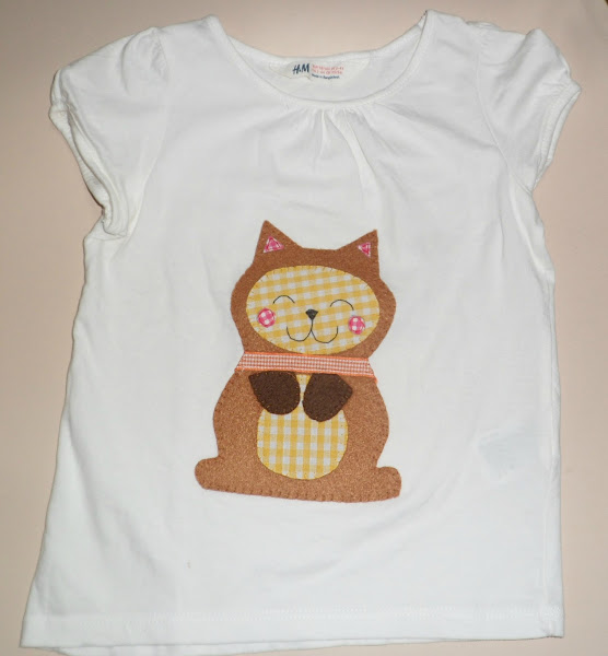 Aquí os enseño una camiseta de gatito en manga corta para cuando venga el buen tiempo.