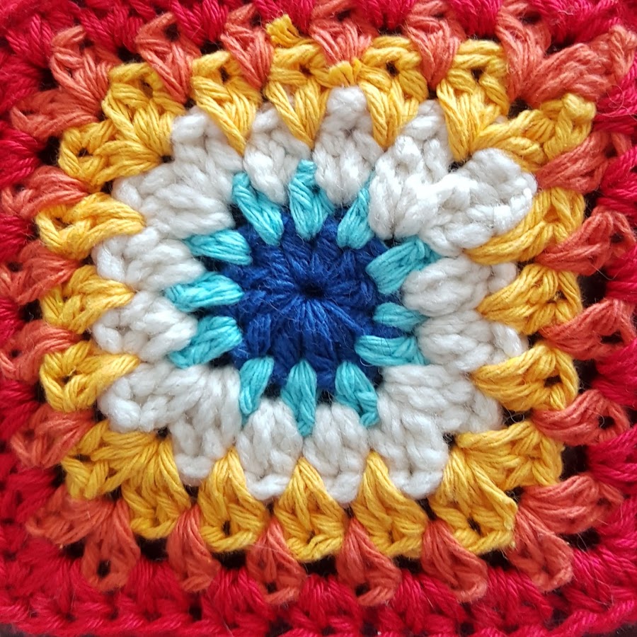 Combiné los colores de granny azules, rojo , naranja, amarillo y blanco y creo que queda muy chulo.