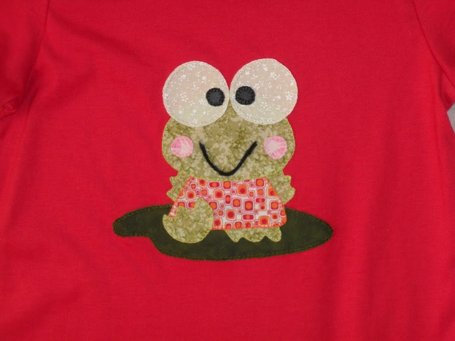 Otra camiseta de patchwork, esta vez de verano, roja y con un sapito muy gracioso.
