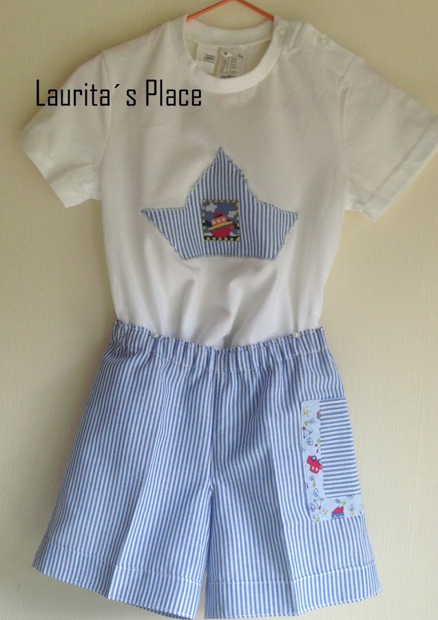 Estamos preparando ya la ropa para el peque para ese verano que no llega en el norte. Como soy fan total de el patrón Peek-a-boo Day Camp Set y no dispongo de mucho tiempo le llevé a mi madre que es modista de toda la vida que me cosiese unos cuantos con diferentes variaciones.