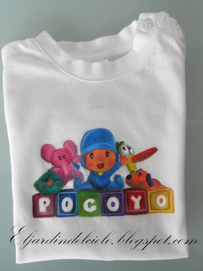 Hoy, mi sobrina pequeña cumple 2 años y como es superfan de Pocoyo, le he pintado esta camiseta. Estoy deseando versela puesta, tiene que quedarle genial con lo morena que es.