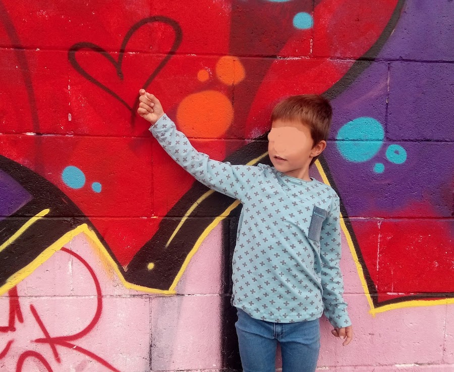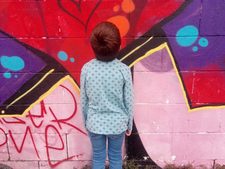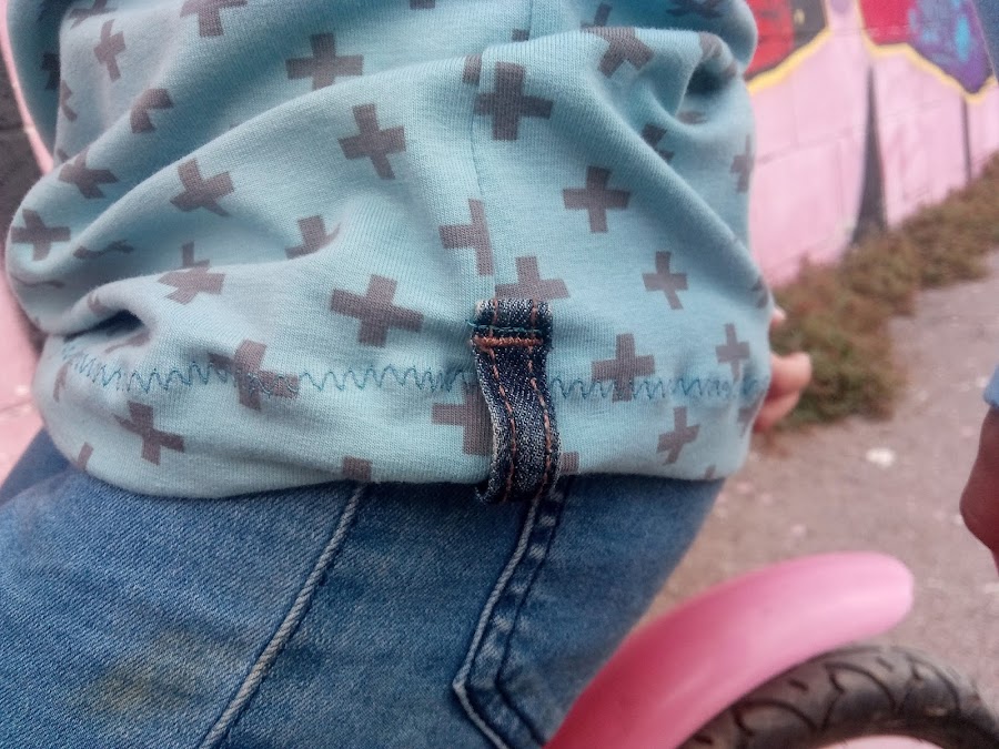 - He hecho el bajo recto por despistada, le di todo el largo de la tela y corté recto, pensé, luego le hago la curva según le quede al peque. Pues resulta que ese día no estaba en casa, y con un ataque de ansiedad de acabarla ya, pues la acabé y se me pasó.