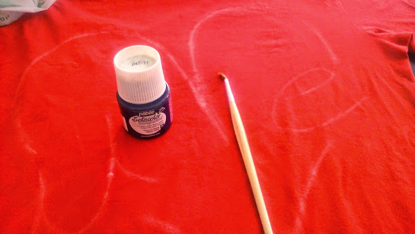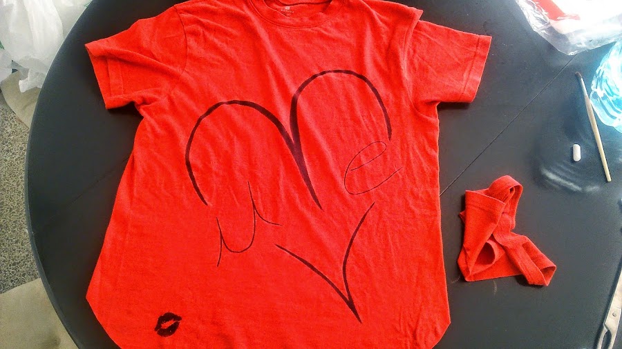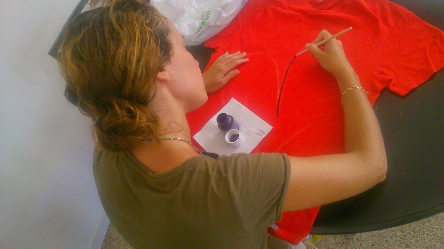 Cogí mi camiseta y tiza y me puse a dibujar el logo de mi sello "hecho a mano" en ella.