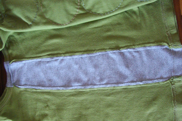 Plan: dos piezas laterales en gris aprovechando camiseta gris de mi hijo (que ya os presenté a propósito del aplique carretera, y había que seguir empleando).