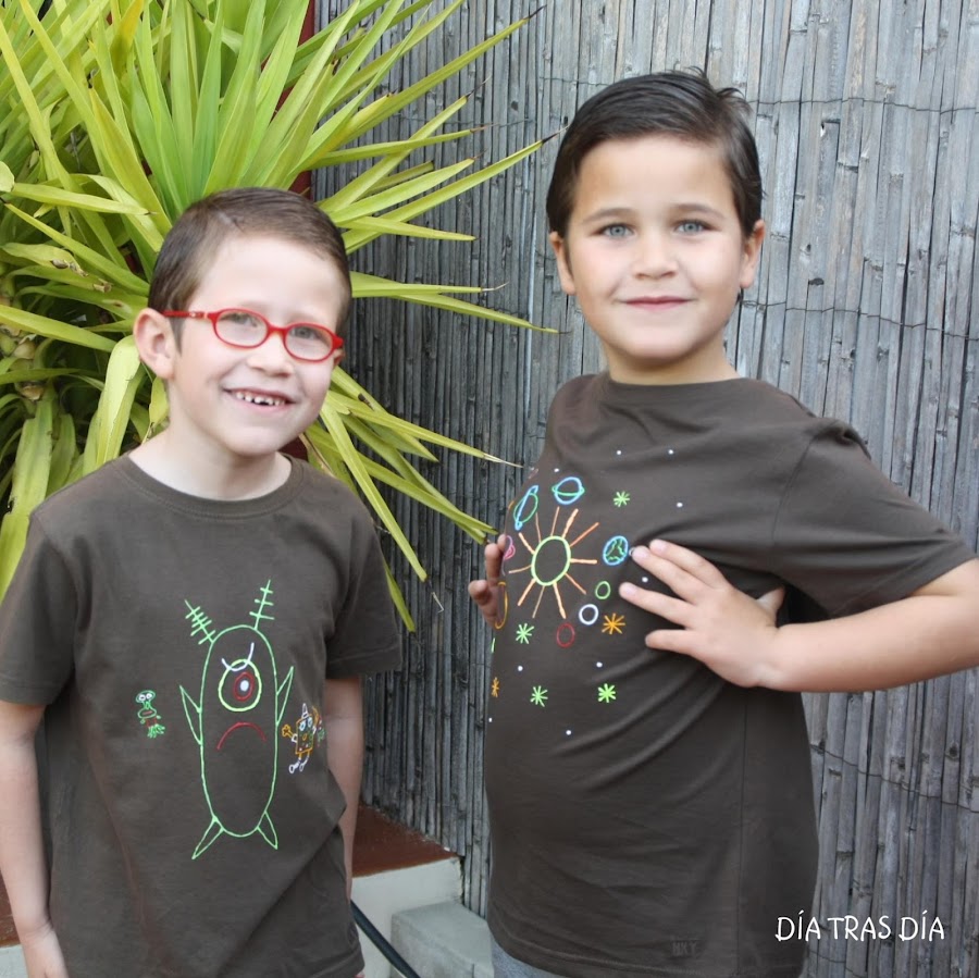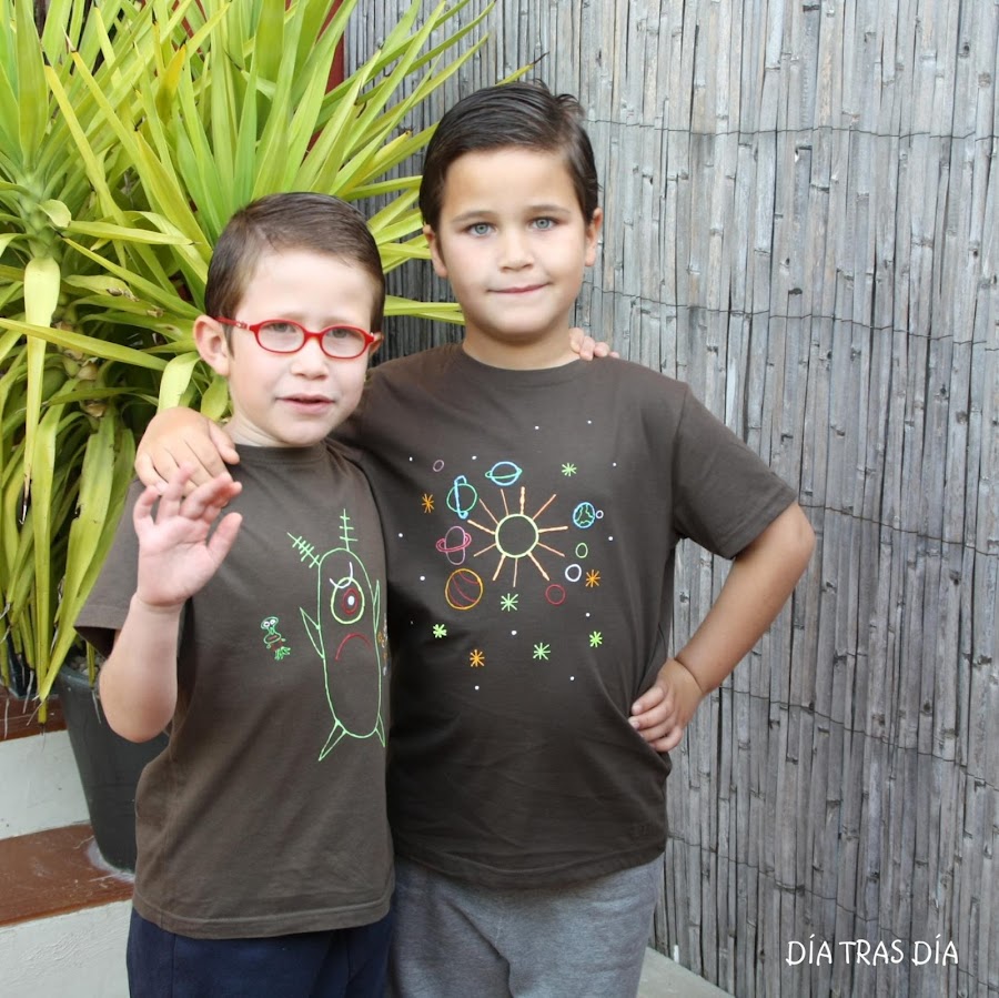 La verdad es que quedaron muy bien y ellos van contentísimos con ellas puestas, presumiendo a diestro y siniestro de sus diseños de camisetas. Ya Iván desde el año pasado (antes incluso de haberse pintado su primera camiseta), me comunicó que cuando sea un poco más mayor se hará un blog para el que incluso tiene nombre decidido: "Las camisetas de Iván". Así que tendré que tener cuidado, que como me descuide, me hace la competencia directamente ;-).