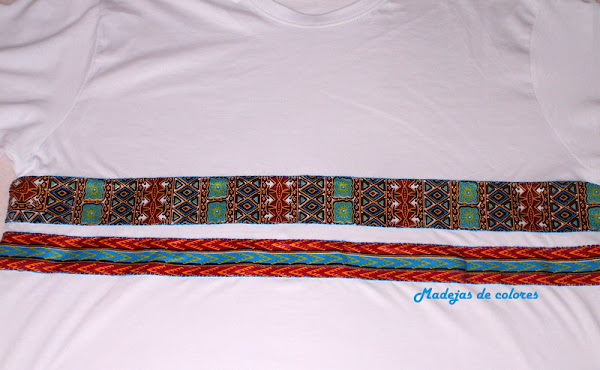 Una vez aplicada, al tratarse de una camiseta grande, se deslucía mucho el dibujo, así que cosí unas cenefas en las mangas. Me gusta más así, no creen?