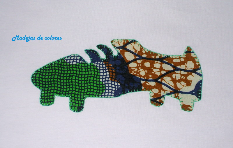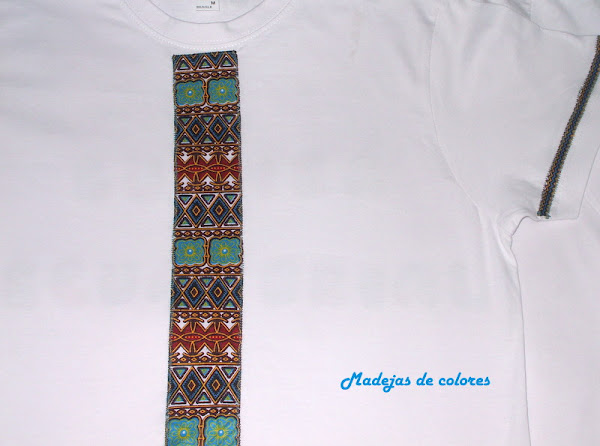 Le puse una en el centro de la camiseta en vertical y otra más estrecha en la manga.