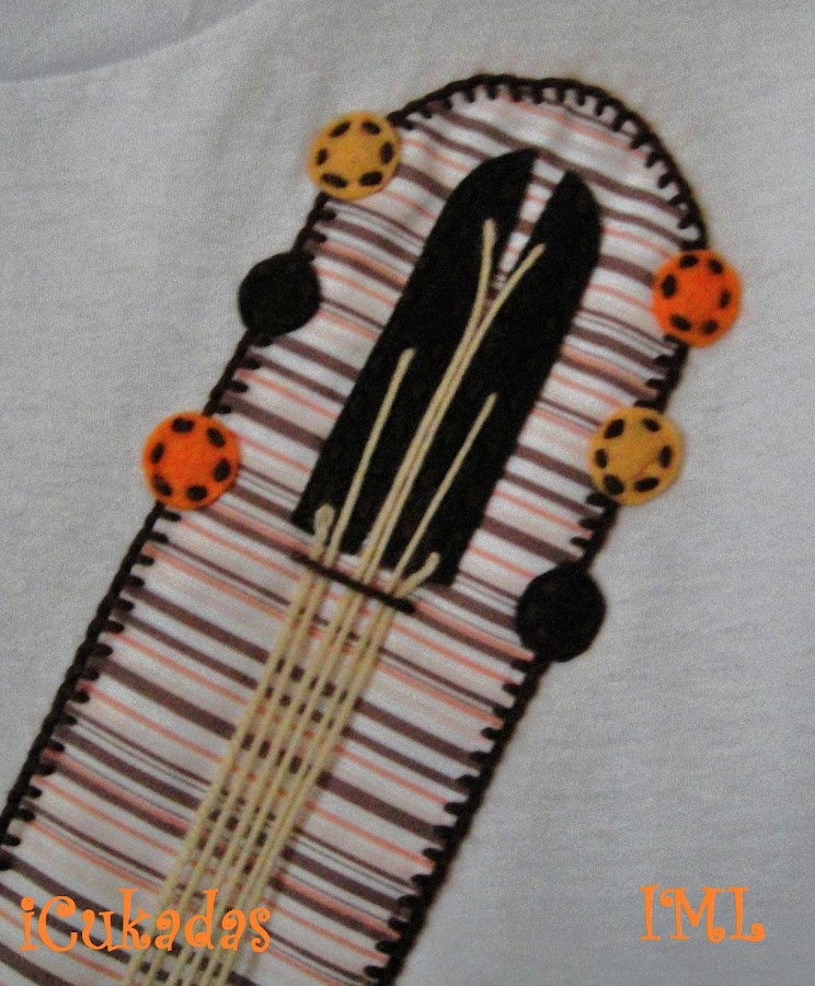 Después de muchas camisetas femeninas, y de otras muchas cosas solo para chicas, él empezó a pedir cosas para él, y aunque me esfuerzo, me cuesta mucho hacer cosas masculinas porque siempre tiendo a poner un lazo, una florecita o alguna tela chula, que la verdad, muy masculinas no son. Por eso después de darle muchas vueltas, buscar telas, y romperme los cascos literalmente, le hice esta camiseta personalizada, y ya que es profe de piano..............