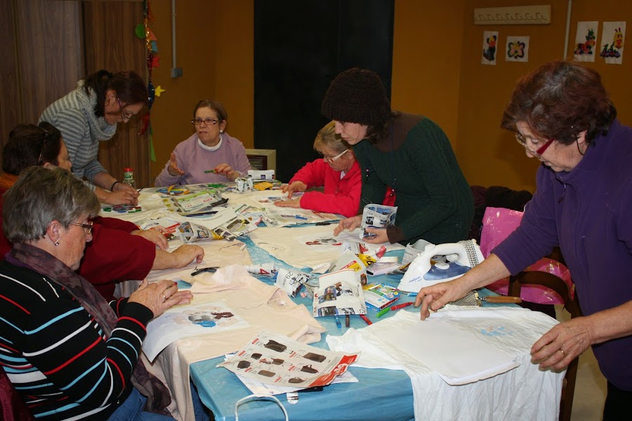 Vuelvo a repetir que para ser la primera plantilla que hacían para decorar con ceras, les dí un diseño muy complicado, pero lo importante era que todas tuvieran su camiseta del taller a la vez que aprendían una técnica nueva.