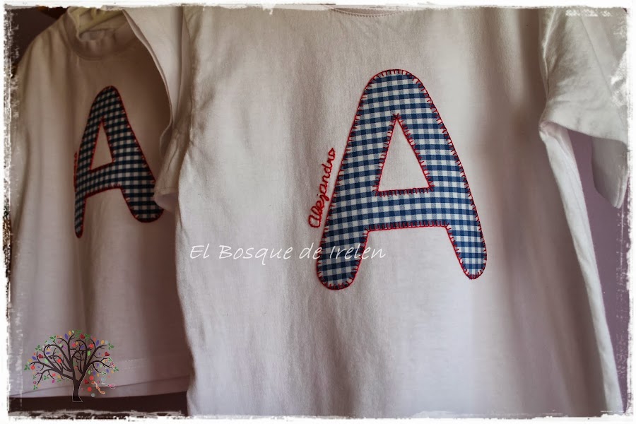 Están hechas con tela de cuadritos vichy y festoneadas en rojo, al igual que el nombre, que está bordado. Estaban maaaaaaás guapos con ellas!!