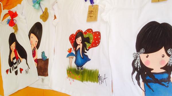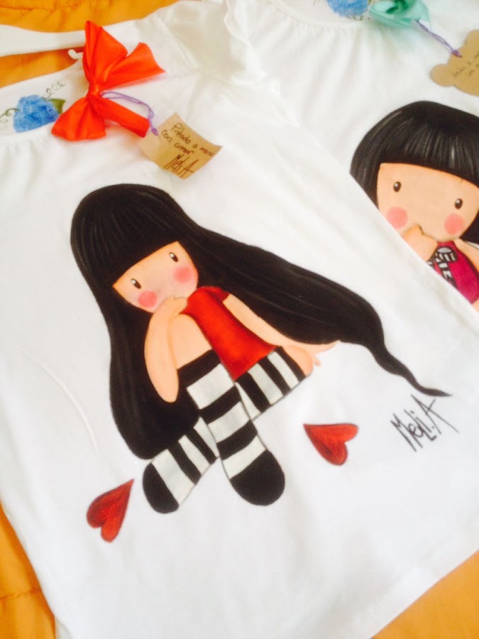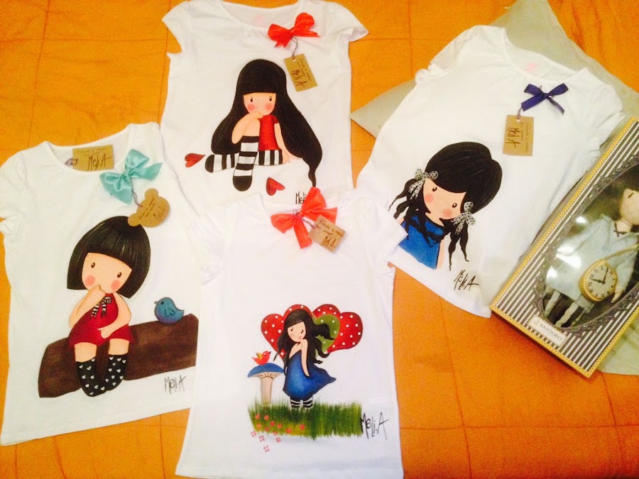 Melina Acosta deseaba preparar una pequeña colección de camisetas para señora y niña, pintadas a mano, basadas en una versión de las famosas muñequitas San toro.
