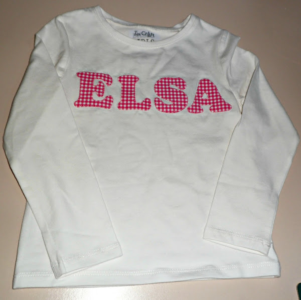 Otras dos camisetas blancas con el nombre para Elsa y Sara.