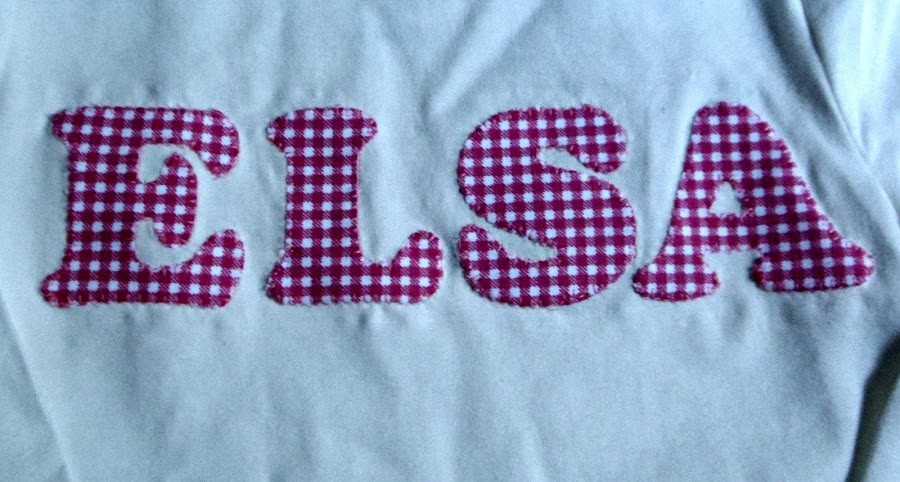 La aplicación de Sara es con una tela de cuadros en tonos rosas y la de Elsa con una tela de flores en tonos rosas también.