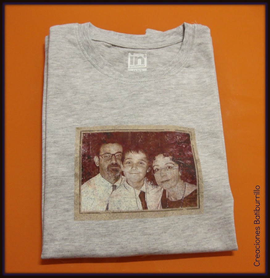 Después, en el caso de este tipo de papel se le retira la parte de atrás (la de los cuadritos) como si se tratase de una pegatina. Y la propia imagen se coloca sobre la camiseta cara arriba. Se cubre con un papel de cebolla (viene en la caja), se plancha durante minuto y medio por todas partes comprobando que queda bien adherido y el resultado es sorprendente!!.