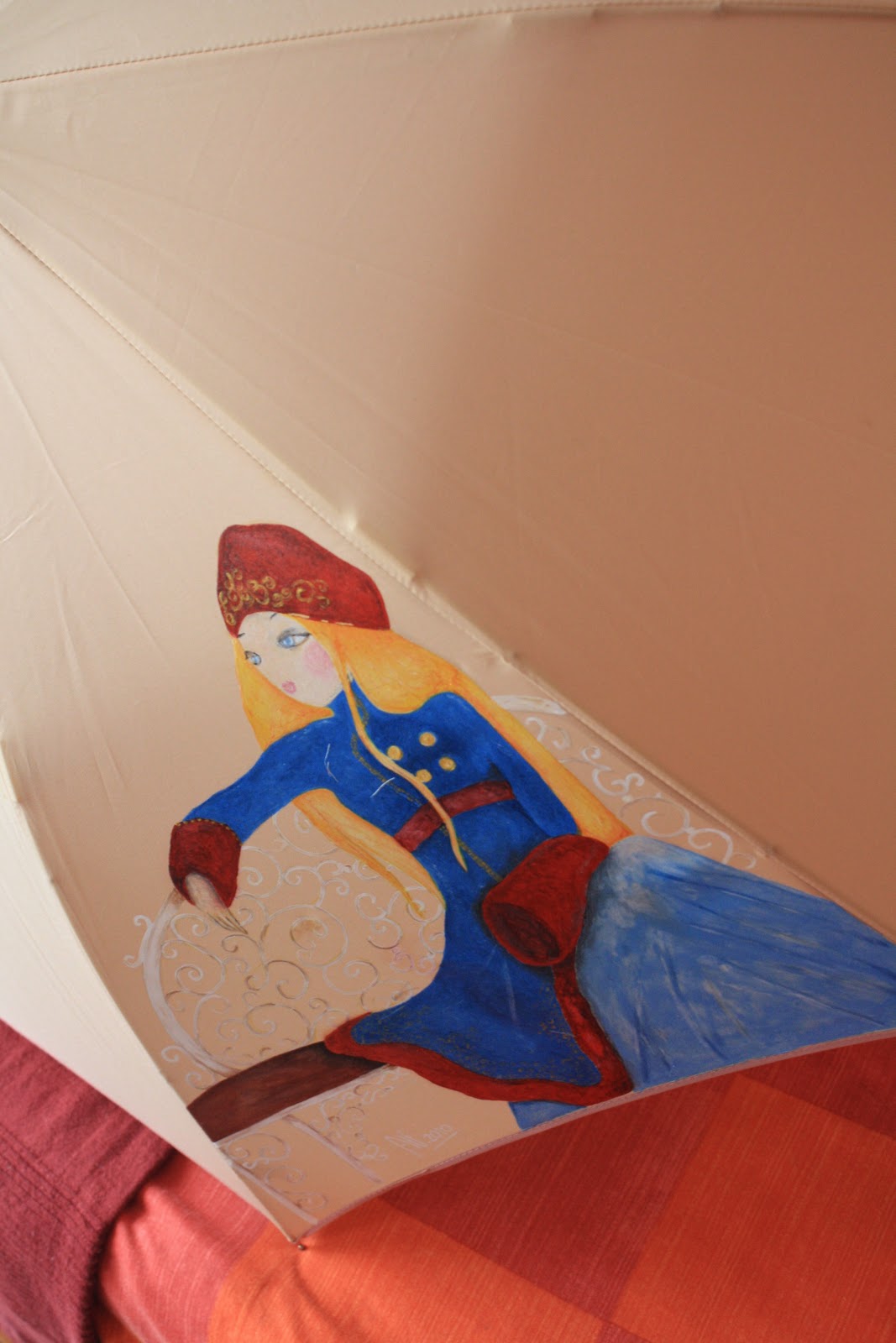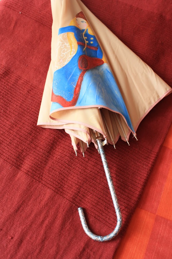 El Mango esta hecho en decoupage............la dueña esta encantada con su ruuuuuuuuuuuuuuuubiaaaaaa.