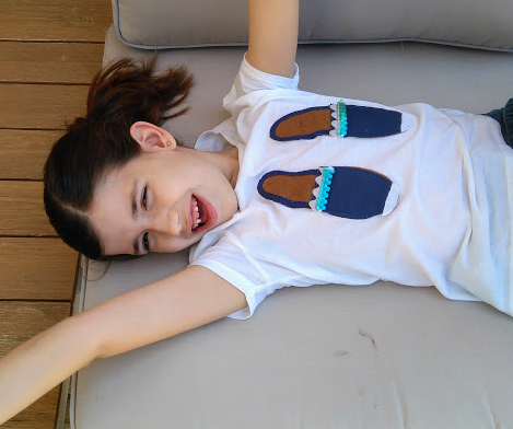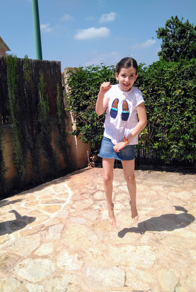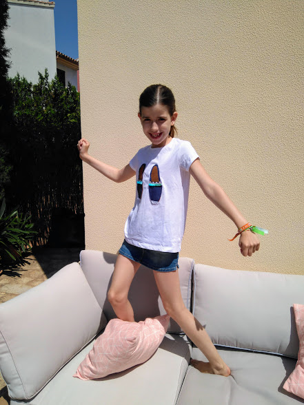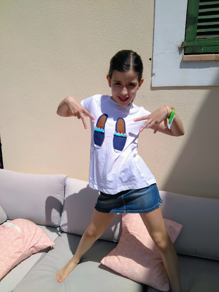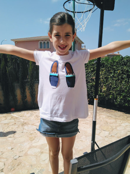Las espardeñas me resultaron muy fáciles de combinar, tan sólo le pedí opinión a Paula del color que las quería. Y creo que su camiseta de zapatos ha quedado una maravilla. Y ella se lo pasó súper bien haciendo de modelo para mí.