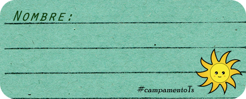 La primera actividad del campamento tiene que ser, por supuesto, para conocernos, así que vamos a crear unas tarjetas identificativas. Y os estaréis preguntando... ¿cómo? Es muy sencillo. ¿Veis la tarjetita que os he dejado aquí abajo? Lo que tenéis que hacer es personalizarla con vuestro nombre/nick (el mismo que habéis puesto en el formulario de inscripción. Por favor, si no lo has hecho ya, inscríbete en la entrada anterior antes de participar en la actividad).