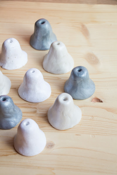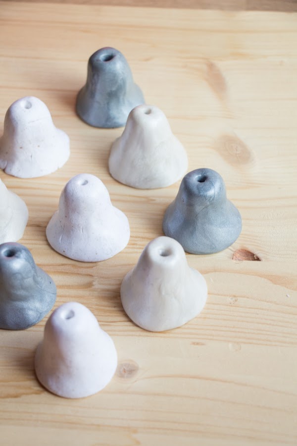 De cada pastilla de arcilla polimérica me salieron cuatro campanitas: una por cada barrita.