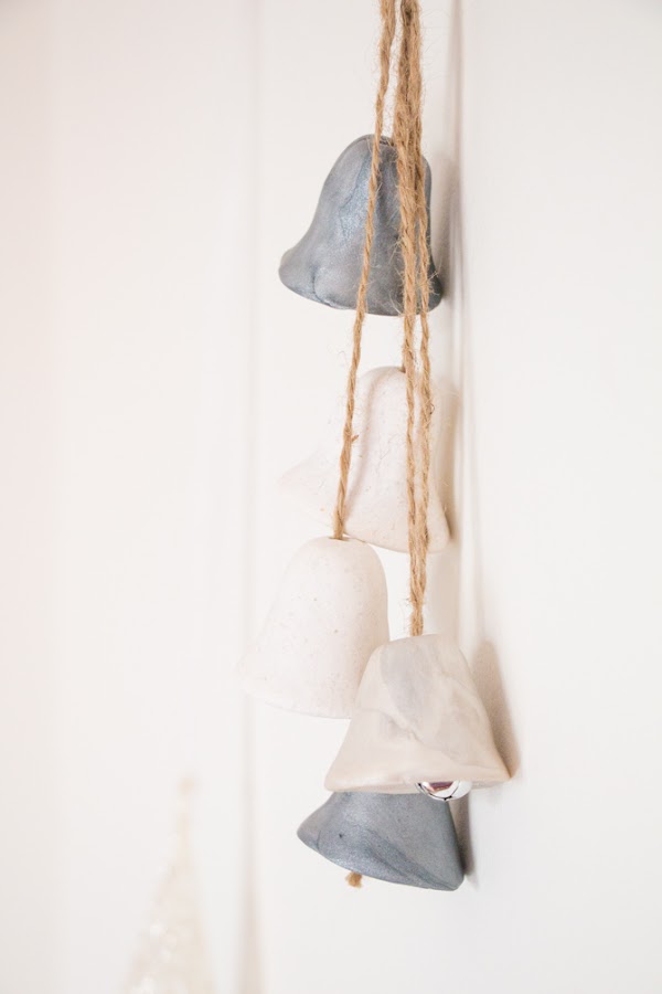 Después, solo me quedó trenzar los hilos e ir añadiendo campanas, aunque tú puedes colgarlas de una en una en el árbol, por ejemplo, o agruparlas en un racimo y atar con ellas unas ramas de eucalipto o de acebo.