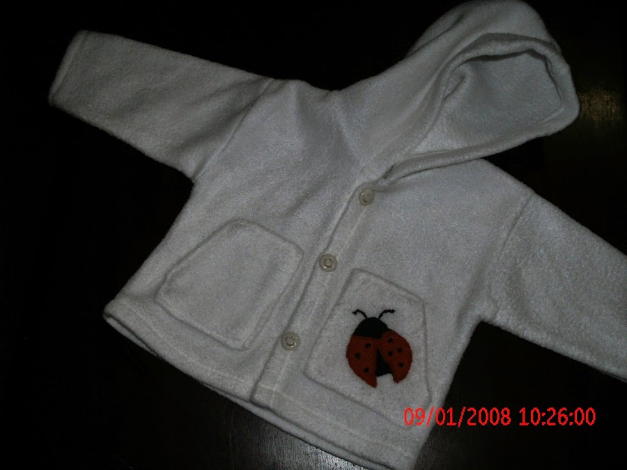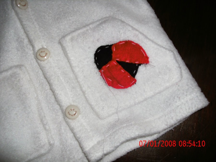 ESTA LA TOME DE MAS CERCA PARA PODERLA VER MEJOR, LA FECHA QUE FIGURA NO CORRESPONDE A LA FECHA EN QUE TOME LAS FOTOS, ESTA MAQUINA SE ME DES-CONFIGURA Y NO SE COMO SE CONFIGURA NUEVAMENTE, TENGO QUE ESPERAR A QUE MI HIJO LO HAGA, PERDÓN POR MI TORPEZA, LA TEGNOLOGIA NO ES MI FUERTE, SIEMPRE DIGO QUE NACÍ EN ÉPOCAS DEL TELÉFONO CON RUEDITA O MANIJITA Y ESTAS MAQUINITAS ME PUEDEN, ESPERO LES GUSTE EL CAMBIO QUE LE HICE AL SAQUITO, YO PIENSO QUE UN POCO DE COLOR EN UNA PRENDA BLANCA LA CAMBIA BASTANTE Y LE DA MAS VIDA Y MAS SI LA PRENDA ES PARA UN BEBE, COMO ESTA.