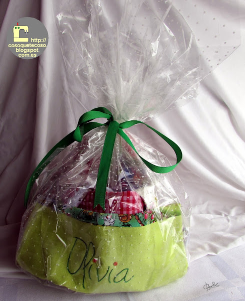 Esta canastilla la he preparado con mucho cariño porque es para la nieta de una amiga que está a punto de nacer.