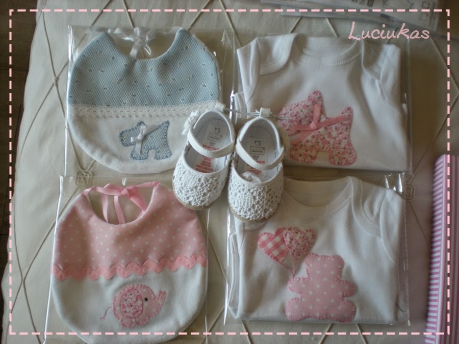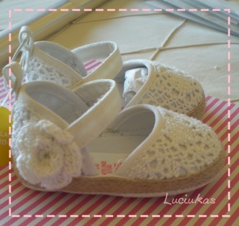 Me ha hecho mucha ilusión hacer todo esto, primero, porque una niña tiene muchas posibilidades, de lazos, de rosas, que me gustan mucho, aunque tengo que reconocer que el azul a algunas niñas les sienta muy bien, y segundo, porque sé que su madre, aprecia lo hecho a mano. Tengo que hacer un alto, con los zapatitos cañameros, que no los he hecho yo, pero los ví, y no me pude resistir a comprarlos, para el veranito, son una monada, y es que son tamaño ¡llavero! más cuquissss.