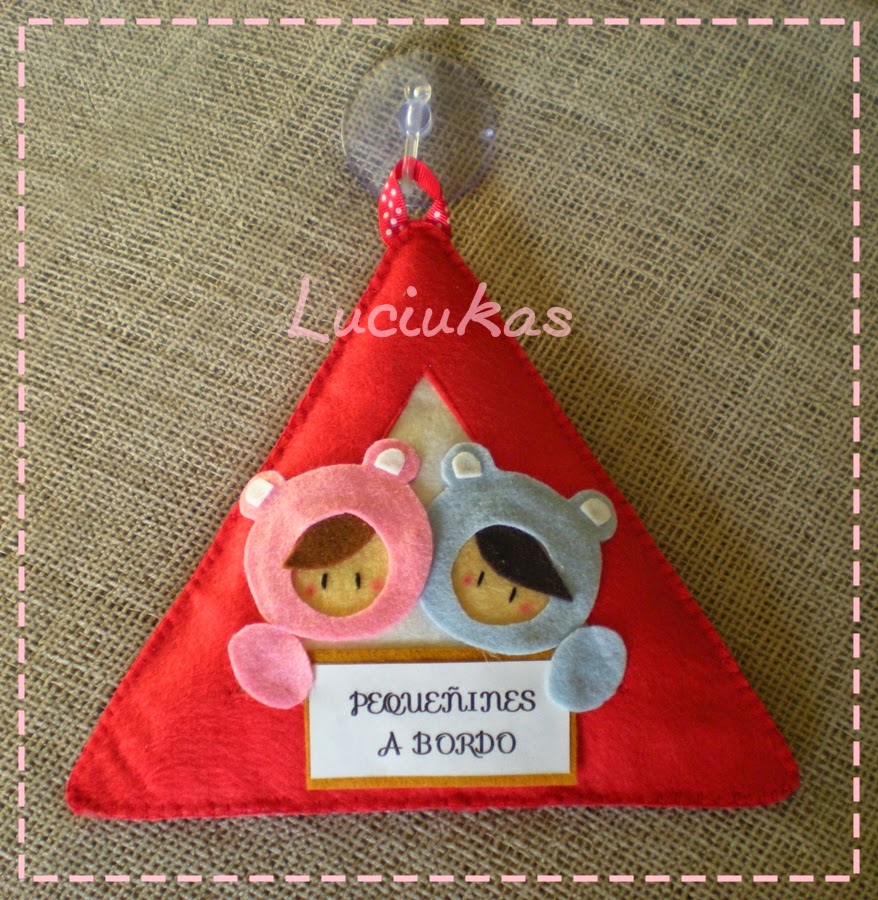 El triángulo para el coche, es el primero que hago después de ver muchos por la red, éste , tiene dos pequeñines disfrazados (como los Bodys de Sebastián y Manuela que publiqué en su día y que están en el apartado de camisetas), y es que Berta, tiene un hermanito que se llama Bruno, a que quedan graciosos?