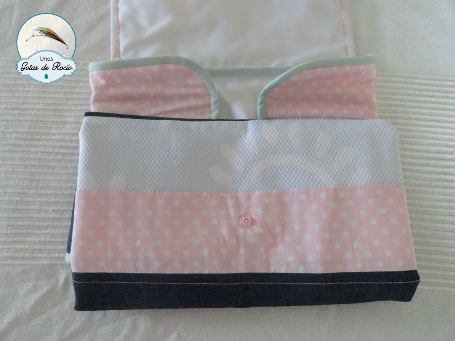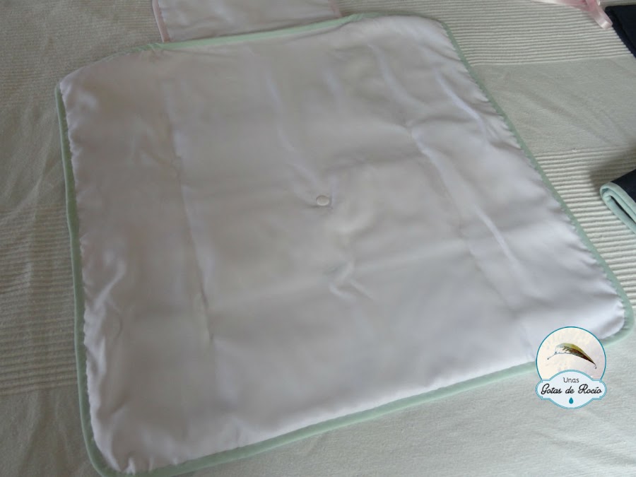 El cambiador lo he hecho siguiendo el tutorial de Lucilú. La tela impermeable es 100 por 100 poliéster.