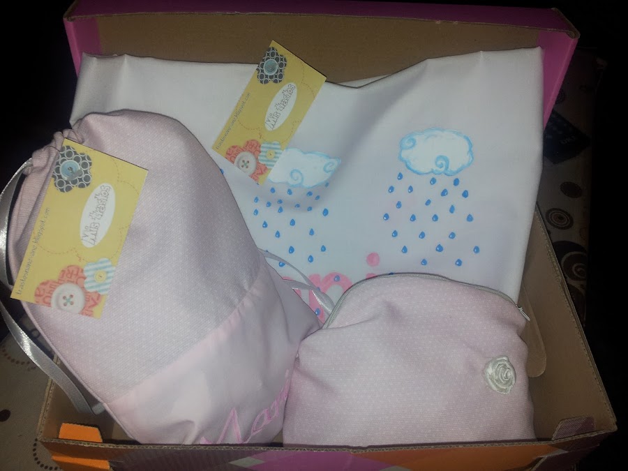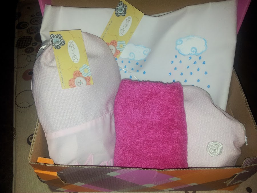 Un encarguito mas..y así es como ha quedado. Recuerda, si quieres hacer un regalo a un recién nacido y te gustaria que fuese único, totalmente personalizado..."madebyme" te lo pone fácil, no dudes en consultarme, hay un montón de posibilidades y para todos los bolsillos!! Esta canastilla lleva toalla bordada, babero, chupetero a juego, triangulo para el coche y todo en una cajita monisi ...