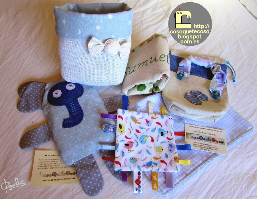 Me ha gustado mucho hacer esta canastilla, por si no se ve todo, os detallo las cosas que llevaba: