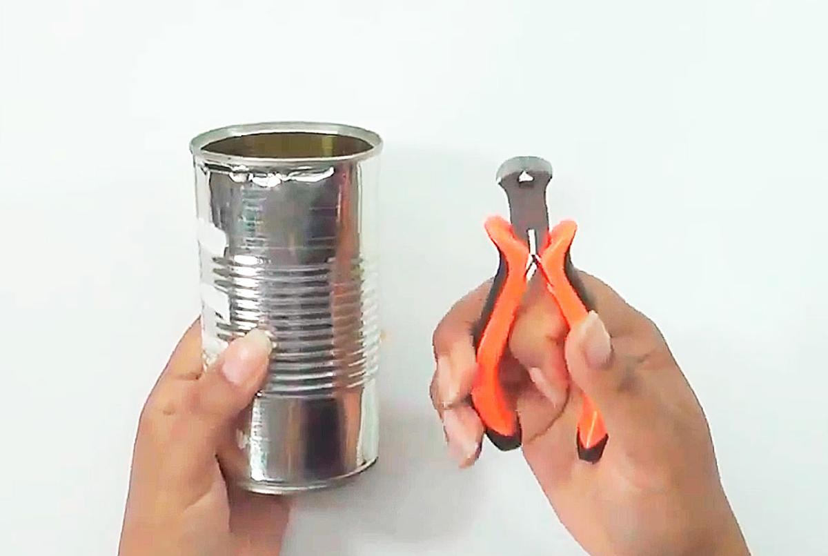 Para cortar el borde de la lata puedes usar este tipo de alicates o pinzas, aunque también puedes usar un abrelatas.
