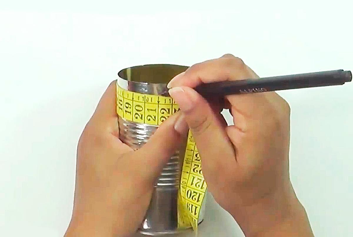 Corta la lata en tiras, guiándote por las marcas, si prefieres puedes marcar toda la línea; desde el borde a la base de la lata, para asegurarte de cortar tiras rectas.