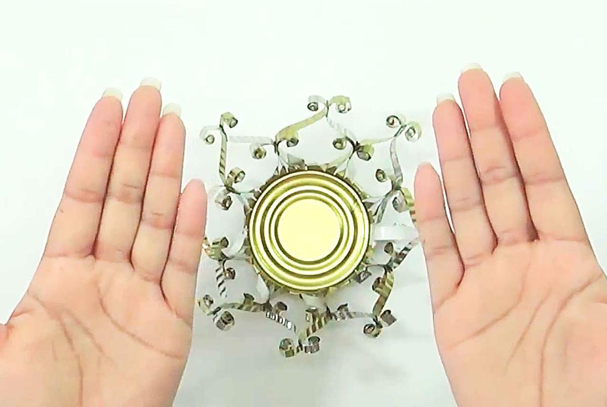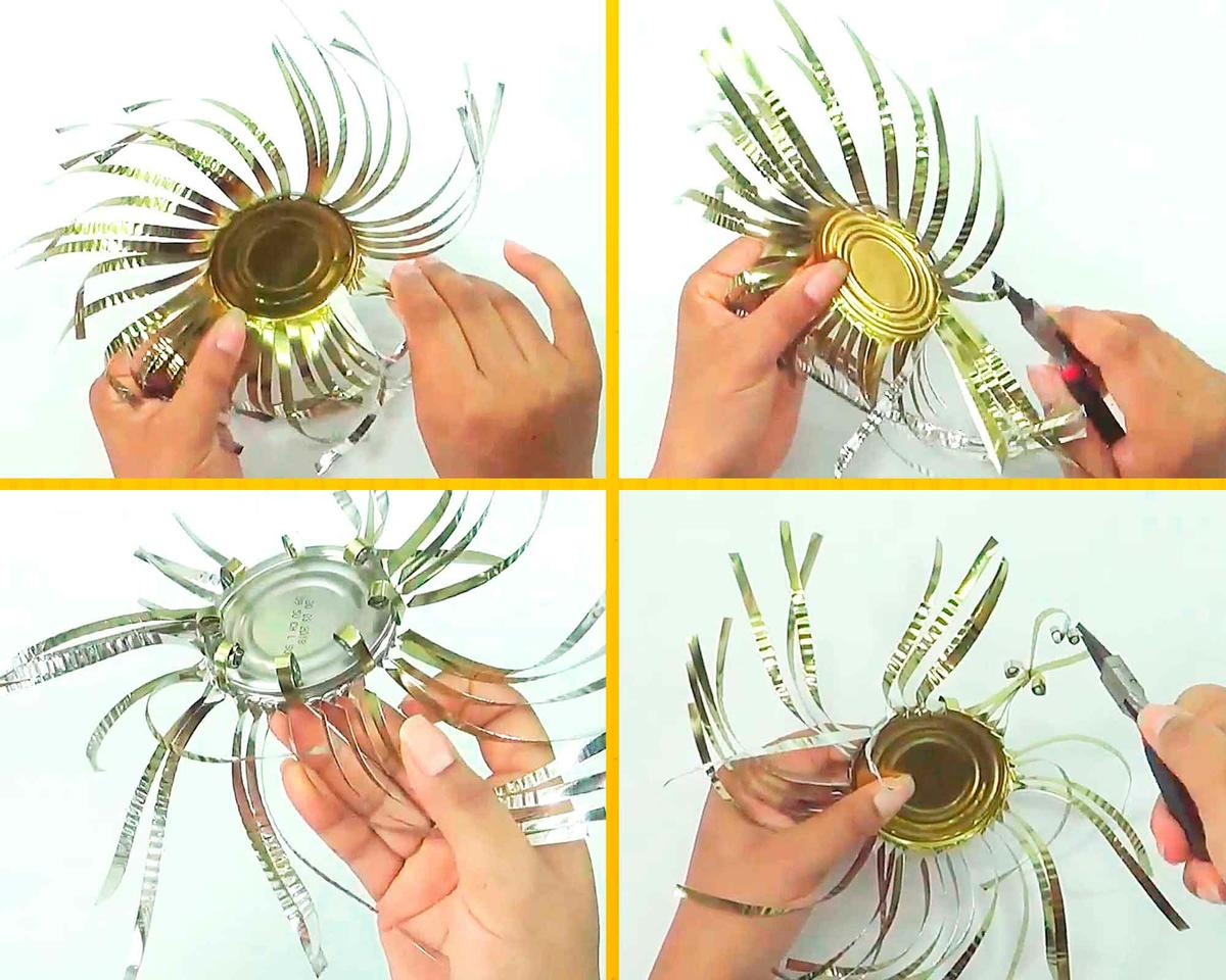 Además te he añadido una imagen para mostrarte que no me he hecho ningún corte con la lata aunque he trabajado sin guantes, es curioso, pero el corte con la tijera deja romo el borde de la lata, así que es seguro hacer este proyecto, aunque recomiendo que lo haga un adulto.